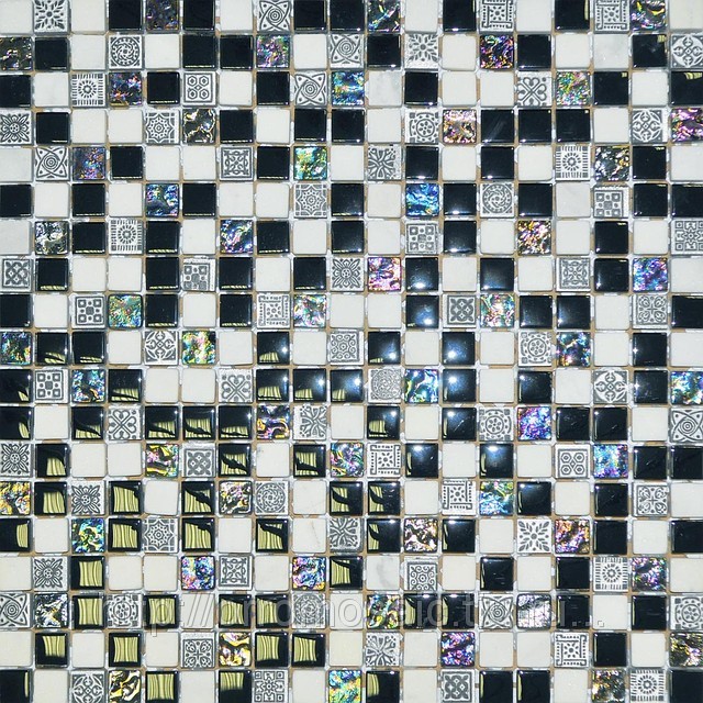 Мозаика BLACK$WHITE TALISMAN, красивая мозаика из натурального камня и стекла, с бензиновым отливом, размер чипа 15*15мм, размер сетки 310*310мм