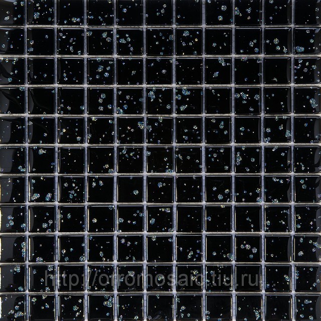 Rio Black стеклянная мозаика яркого черного цвета с серебристыми пузырьками. Идеально подходит для декора. Подходит как для влажных, так и для сухих помещений.